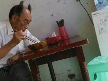 真是牛逼,带个牛角来吃饭