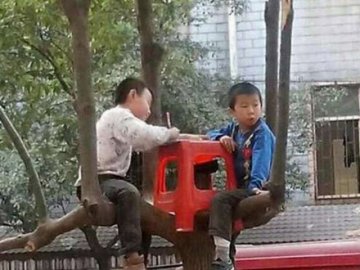 看到小朋友如此拼命的般到树上去学习了,真是醉了 哥哥,你学习这么用功,你是我的榜样...