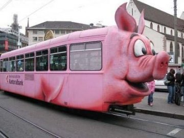一辆搞怪的猪头列车 送你一个超级大西瓜 悬空停车,不占地方...