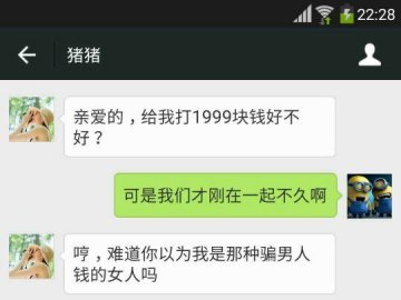 1.小明的女朋友最近老是外出,晒的漆黑!女朋友就给小明打电话抱怨:老公,晒成这样,下月办酒席的时候穿白婚纱不是显得更黑!小明敷衍女朋友说:那就穿黑婚纱!女朋友接话,寡...
