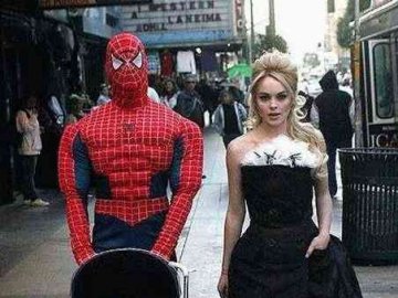蜘蛛侠一家人都在逛街 姑娘,你为何这么拼爬树上呢...