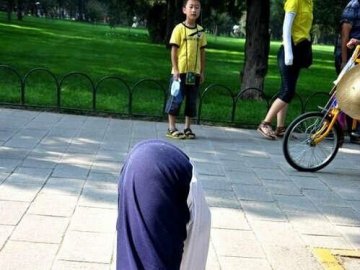 大叔你的功夫也练到家了 出门那么急穿错鞋了吧...