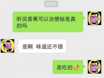 恶搞短信笑话女汉子香蕉是治便秘,但是它是用来吃的,而不是用来塞的